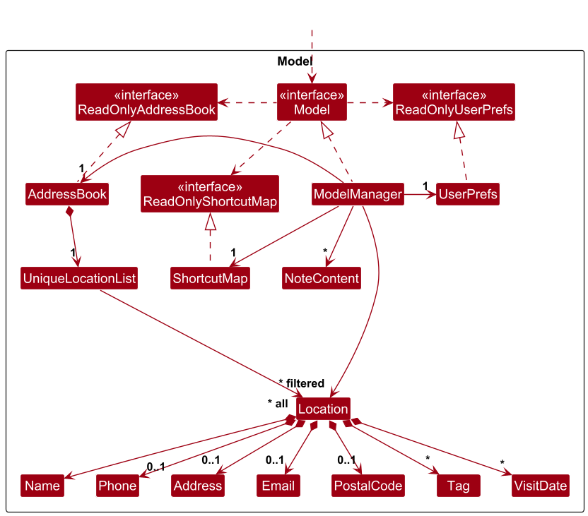 Locationobjects as a separate filtered list which is exposed to outsiders as an unmodifiableObservableList<Location>that can be observed, e.g. the UI can be bound to this list so that the UI automatically updates when the data in the list changes. - stores the planner locations as a separate filtered list based on the selected date.