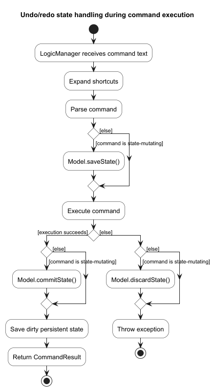 Commandobject (more precisely, an object of one of its subclasses e.g.,DeleteCommand) which is executed by theLogicManager. - The command can communicate with the